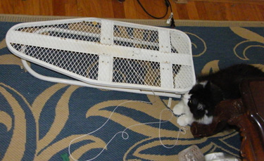 Yes, this is the ironing board where all the magic happens. If I'm working with a particularly special fabric, I might put some paper towels down as a buffer between it and the rust stained splendor that is my cover.